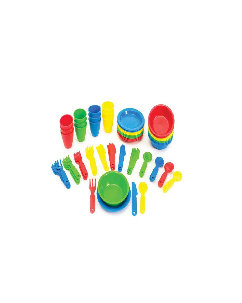 Confezione con 12 piatti piani, 12 piatti fondi, 12 bicchieri e 36 posate. Piatto grande diametro 12,5 cm. Da 2+ anni.