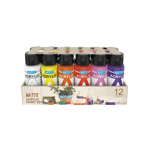Set 12 flaconi acrilici effetto opaco 60 ml., in colori assortiti.