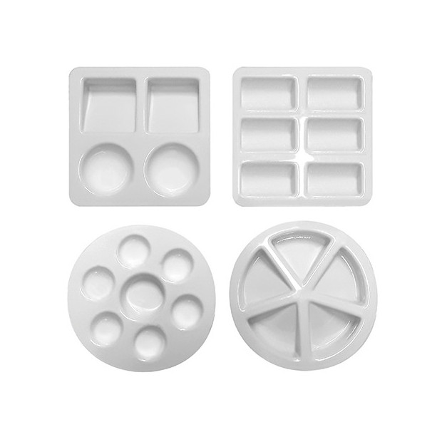 Set 4 bacinelle/tavolozze assortite in plastica (2 quadrate 10×10 cm + 2 tonde ⌀ 10,5 cm)