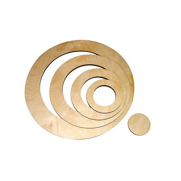 Oggetti in legno ideali come base per. decoupage, pirografia, pittura ecc. Corone in legno set 4 pezzi misure assortite. Spessore 6 mm., diametri esterni cm. 10, 16, 25, 35.