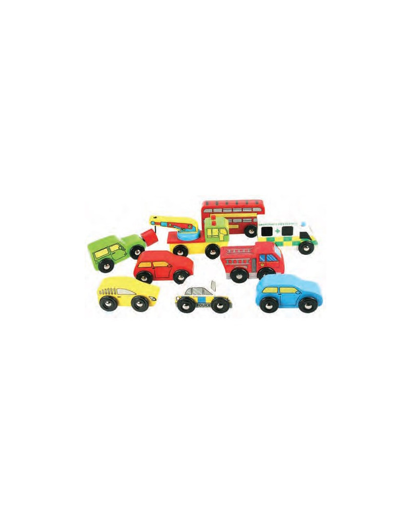 Il set di nove pezzi comprende auto, auto da corsa, minivan, auto della polizia e taxi. Dimensione min 6 cm, max 11 cm. Da 3+ anni.