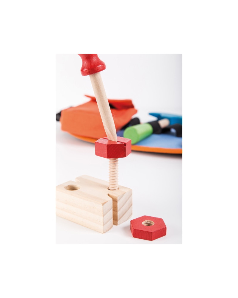 Sempre gli strumenti a portata di mano con questa cintura degli attrezzi. Nessun lavoro sarà troppo grande o troppo difficile. In legno; misura circa 33,5 x 7 x 14 cm. Da 3+ anni.