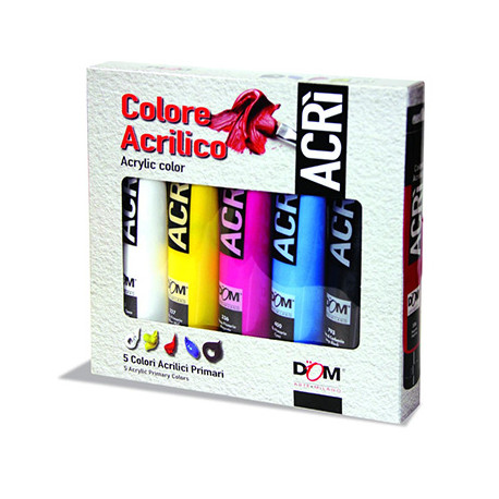 Set 5 flaconi da 100 ml. di colori acrilici primari assortiti.