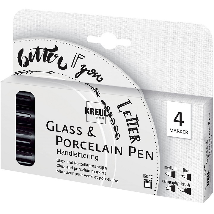 Set “CALLIGRAFIA” con 4 pennarelli colore nero con punte assortite. Adatti a vetro, metallo, terracotta, ceramica e porcellana.
