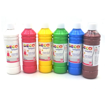Set di 6 flaconi di colori a tempera a base d’acqua, completamente atossici e adatti ai bambini.