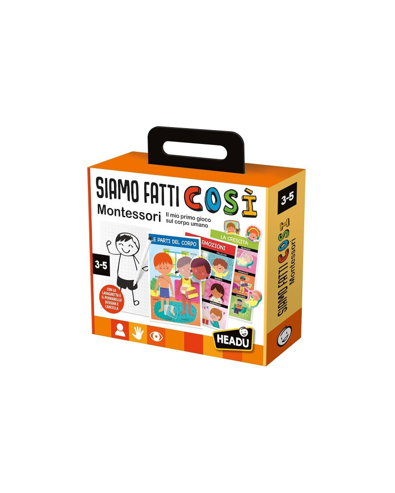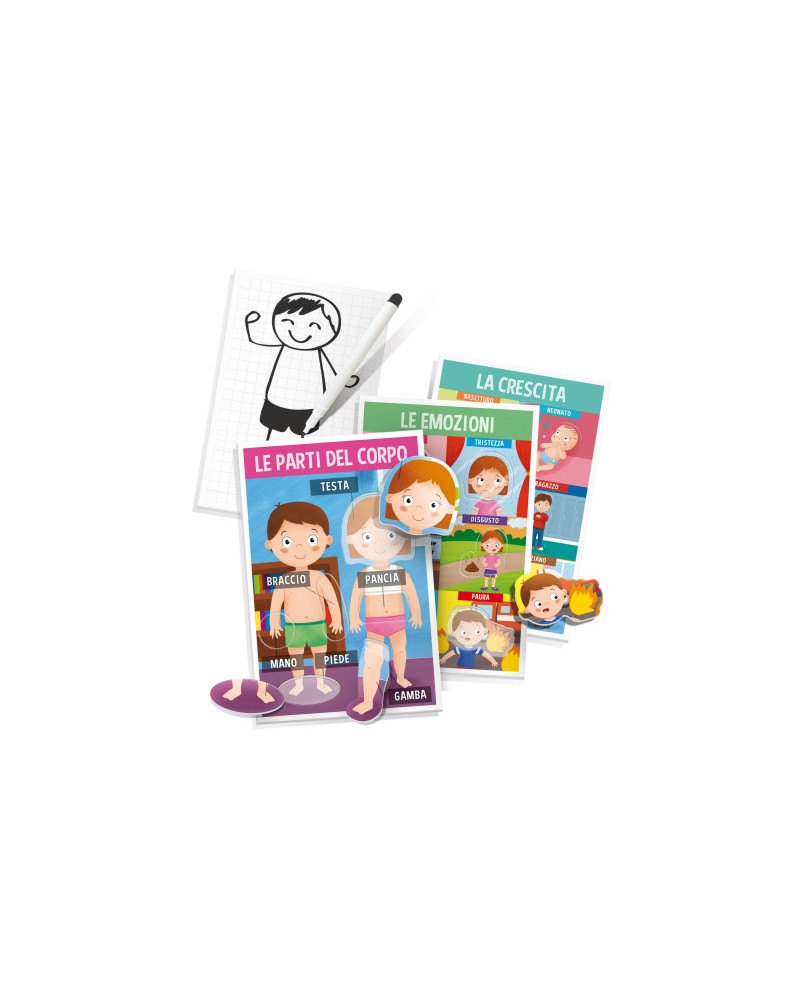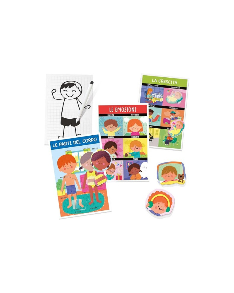 Un divertente gioco ad incastri per riconoscere la propria identità fisica ed emotiva. Il bambino scopre le parti e le posizioni del corpo, i cinque sensi, le espressioni del viso e altro ancora. In più, rappresenta il corpo umano disegnandolo. Contenuto 7 cartelle del corpo umano; 42 sagome ad incastro; 1 lavagnetta per disegnare; 1 pennarello disegna e cancella. Età 3+ anni.