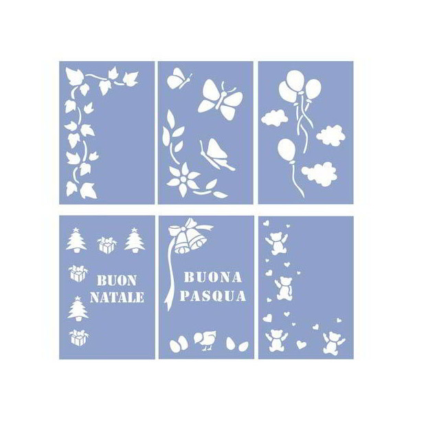 Set 6 stencil (in plastica) 10×15 cm con soggetti assortiti