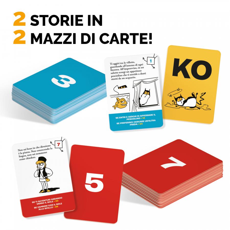 Contenuto: 2 mazzi da 50 carte con 2 storie a bivi; Regolamento