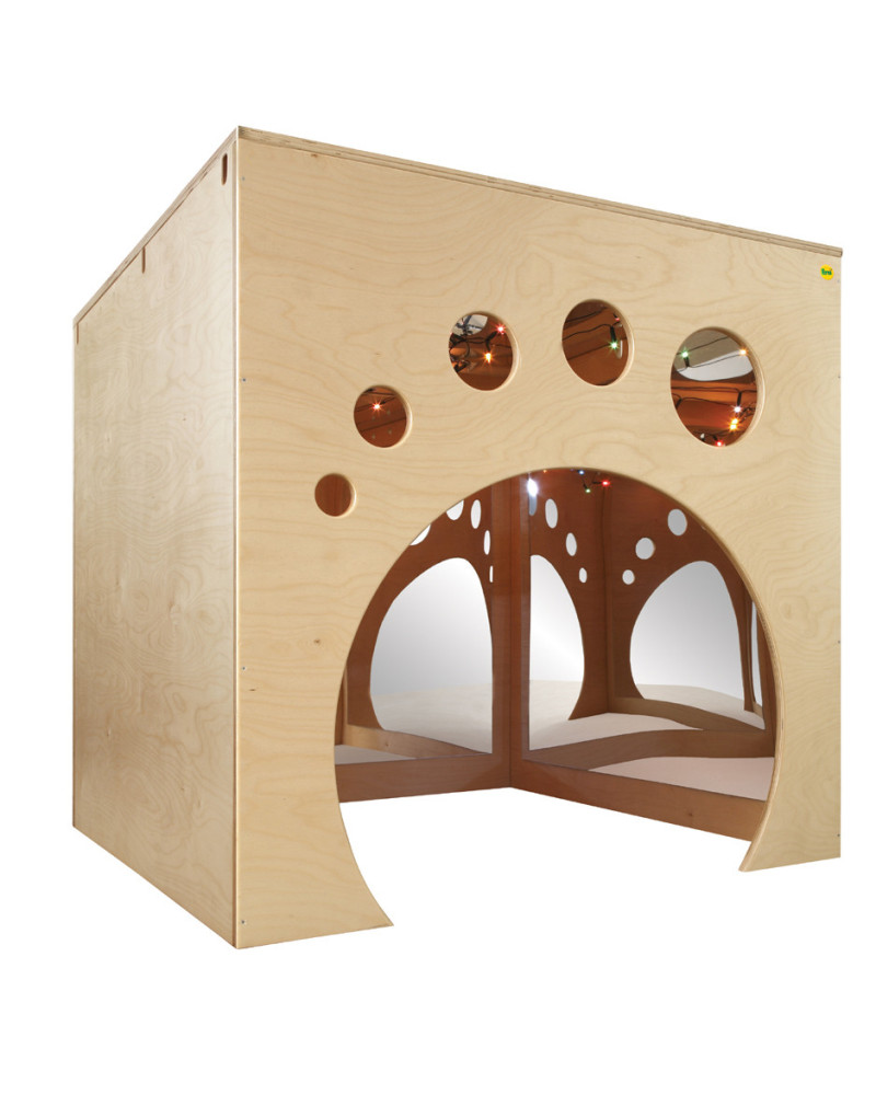 Struttura realizzata interamente in multistrato di betulla verniciata al naturale con bordi stondati a vista e raggiati come previsto da normativa. Specchi antinfortunistici Dimensioni: cm 105x105hx92