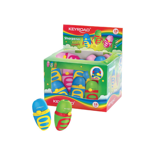 Temperamatite per matite con ø mm.8 - multifunzione, rivestimento morbido, facile da impugnare. Adatto a punte affilate o tondeggianti a seconda della necessità. Dotato di contenitore per trucioli. Disponibile in blister da 1 pz. o in espositore formato Scuola da 18 pz.