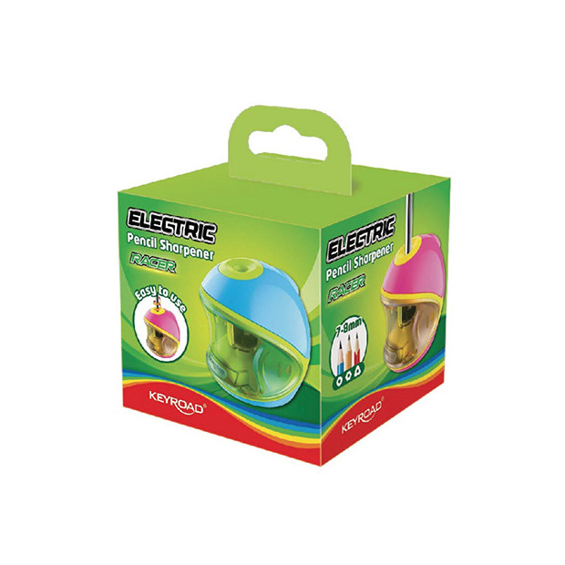 Temperamatite per matite ø mm.8 (anche triangolari). Funziona con 2 batterie AA (non incluse). Design moderno e colori brillanti. Disponibile in vari colori.