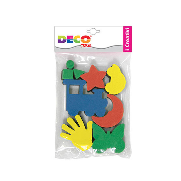 Timbri in spugna con impugnatura rigida. Impugnatura mm. 7. Un modo semplice e veloce per realizzare simpatiche decorazioni a tampone su superfici con colori a tempera, acrilici, stoffa.