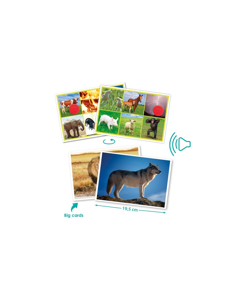 Gioco educativo per imparare a differenziare 25 suoni degli animali e della natura, identificarli con la loro immagine reale e conoscere i loro nomi. Contenuto: 25 carte plastificate 13,5 x 19,5 cm, 150 gettoni in plastica e 1 CD MP3.