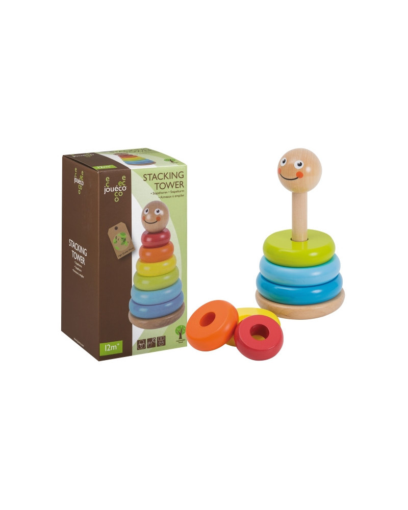 Gli anelli mano a mano impilati sulla base permettono di ottenere un simpatico personaggio. Base, perno e 6 elementi. In legno; altezza 20 cm. Da 12 mesi