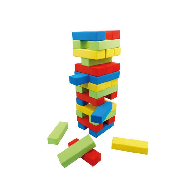 Un gioco di destrezza senza tempo: i bambini devono comporre la torre con i blocchi e, con mano ferma, a turno, devono sfilare un blocco dal basso per poi riposizionarlo in alto. Chi fa crollare la torre ha perso!