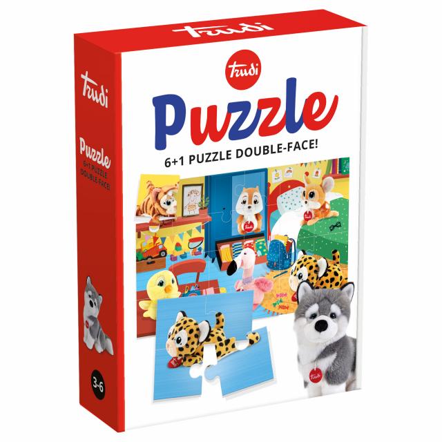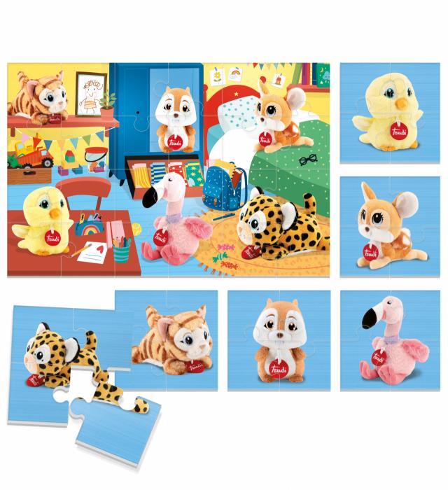 6 simpatici simpatici puzzle double-face e una grande ambientazione, per giocare insieme ai dolci animali del mondo Trudi! CONTENUTO: 6 puzzle; 1 grande ambientazione.