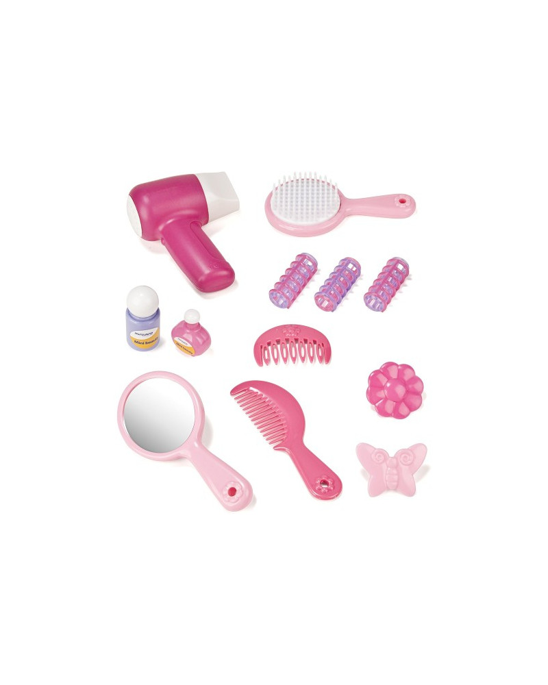 Confezione con asciugacapelli e 9 accessori in plastica. Dimensioni 27 x 23 x 10 cm. Da 3+ anni.