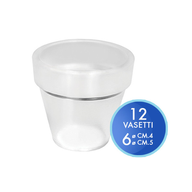 Semplici vasetti in materiale plastico antiurto per la sicurezza del bambino. I materiali si adattano a ogni tipo di decorazione. Tramite una foratura alla base del vasetto, è possibile appendere quest'ultimo, oppure utilizzarlo per interrare piccoli semi. Ogni set contiene 12 pezzi: 6 pezzi diametro 4 cm. e 6 pezzi diametro 5 cm. Disponibili in vari colori.