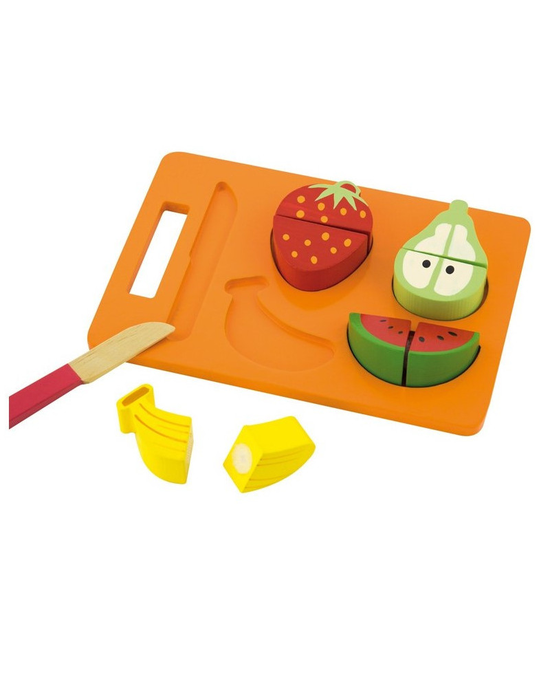 Divertitevi a tagliare con un coltello e ad attaccare i vari frutti inclusi: banana, anguria, pera e fragola. Dimensioni: 21,4 x 15 x 3 cm. Da 18+ mesi.