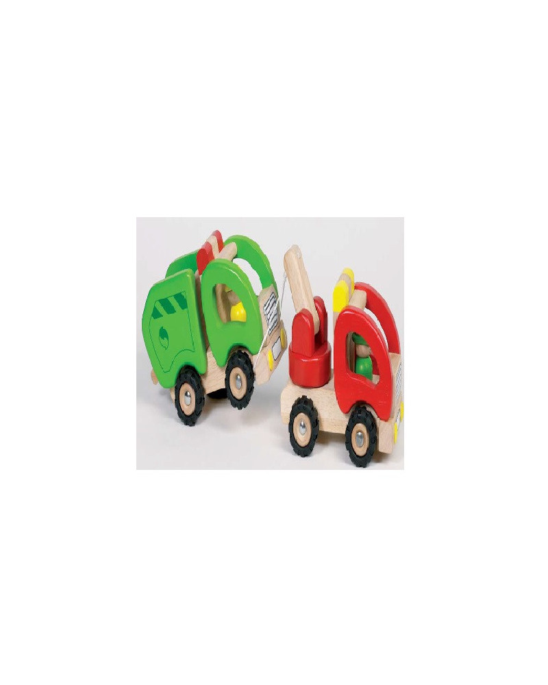 Veicoli in legno massiccio con ruote gommate e dotati di personaggi. Dimensioni: 18,5 x 8,5 x 10 cm. Da 2+ anni.