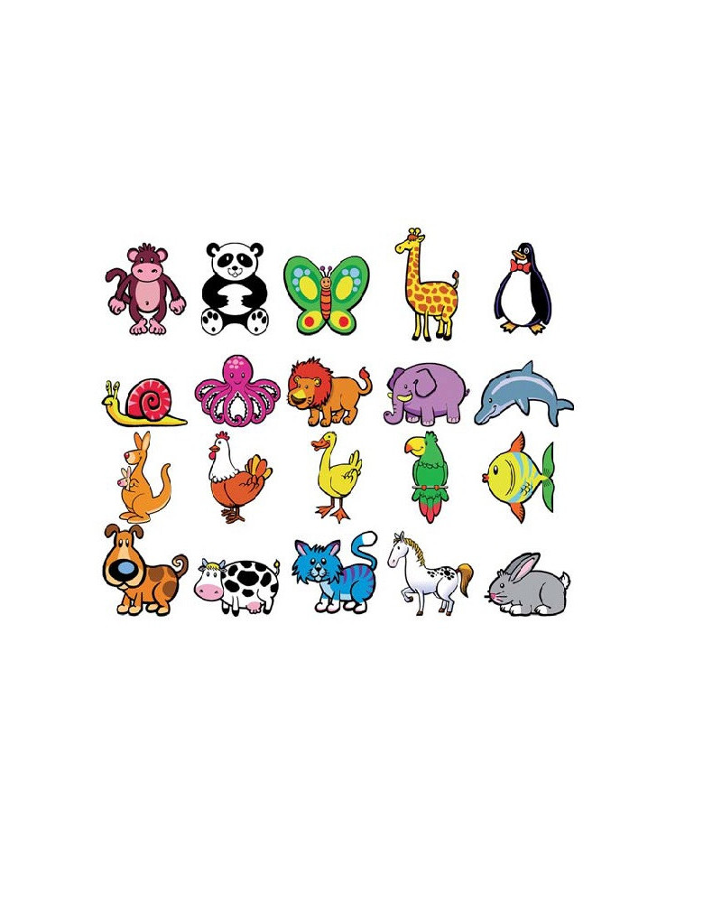 Set di 20 animali domestici, selvatici e marini, da attaccare su qualsiasi superficie magnetica. Dimensione approssimativa del pezzo: 8 cm. Da 18+ mesi.